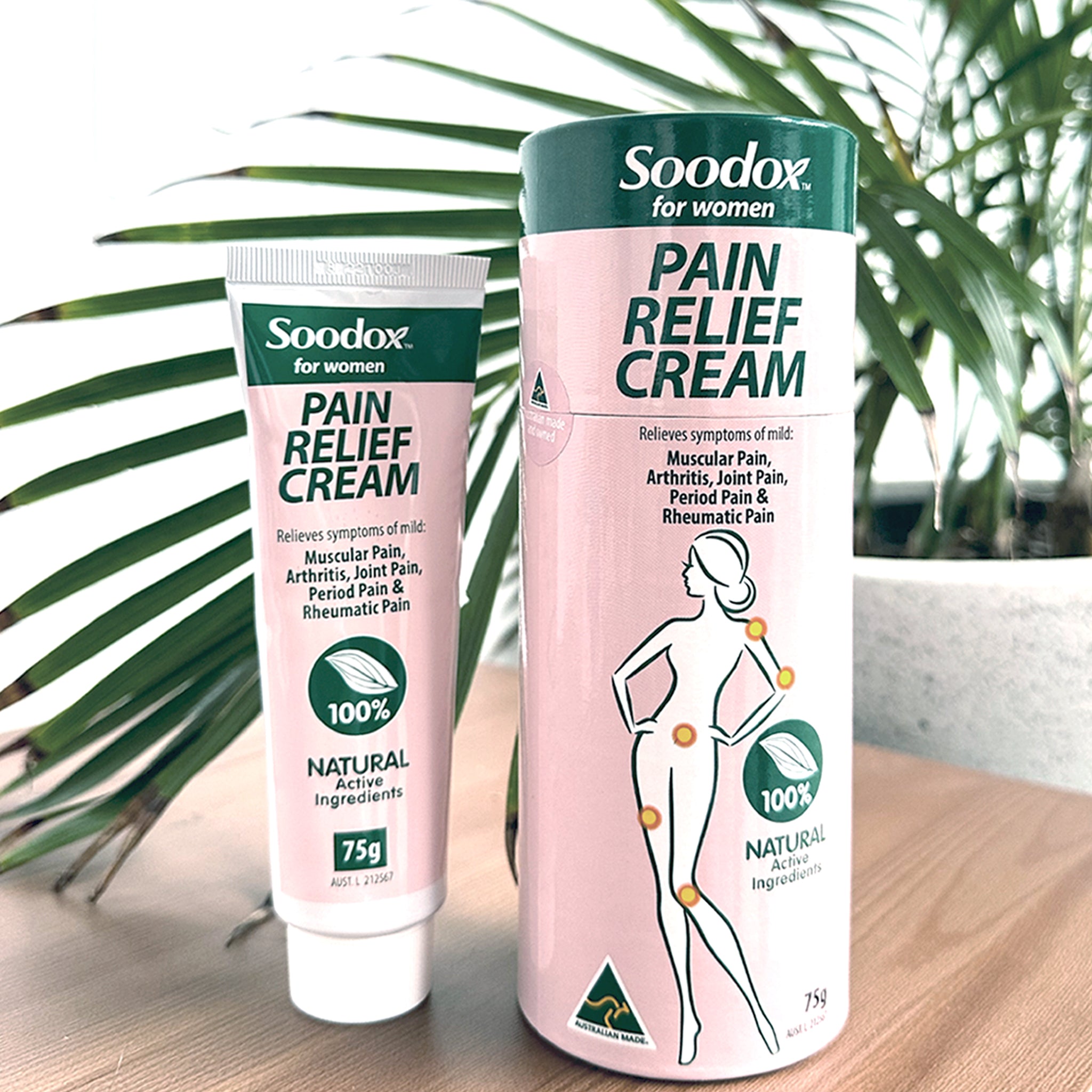 Soodox Women’s Pain Relief Cream 75g for the temporary relief of period pain, muscle, joint, strains, mild arthritis or rheumatic aches, and pain.